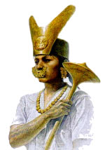 Una simile divinita’ e’ rappresentata in piedi, ad un lato dell’entrata principale del complesso centrale, tra due serpenti con testa di condor che scivolano verticalmente ai suoi lati. Il coltello e la testa tagliata che sostine nelle sue mani indicano che questo essere soprannaturale esigeva vite umane in sacrificio.